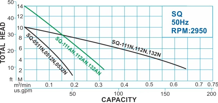 Bagian yang terendam pada pompa submersible seri SQ terbuat dari casting stainless steel SCS13/SS304