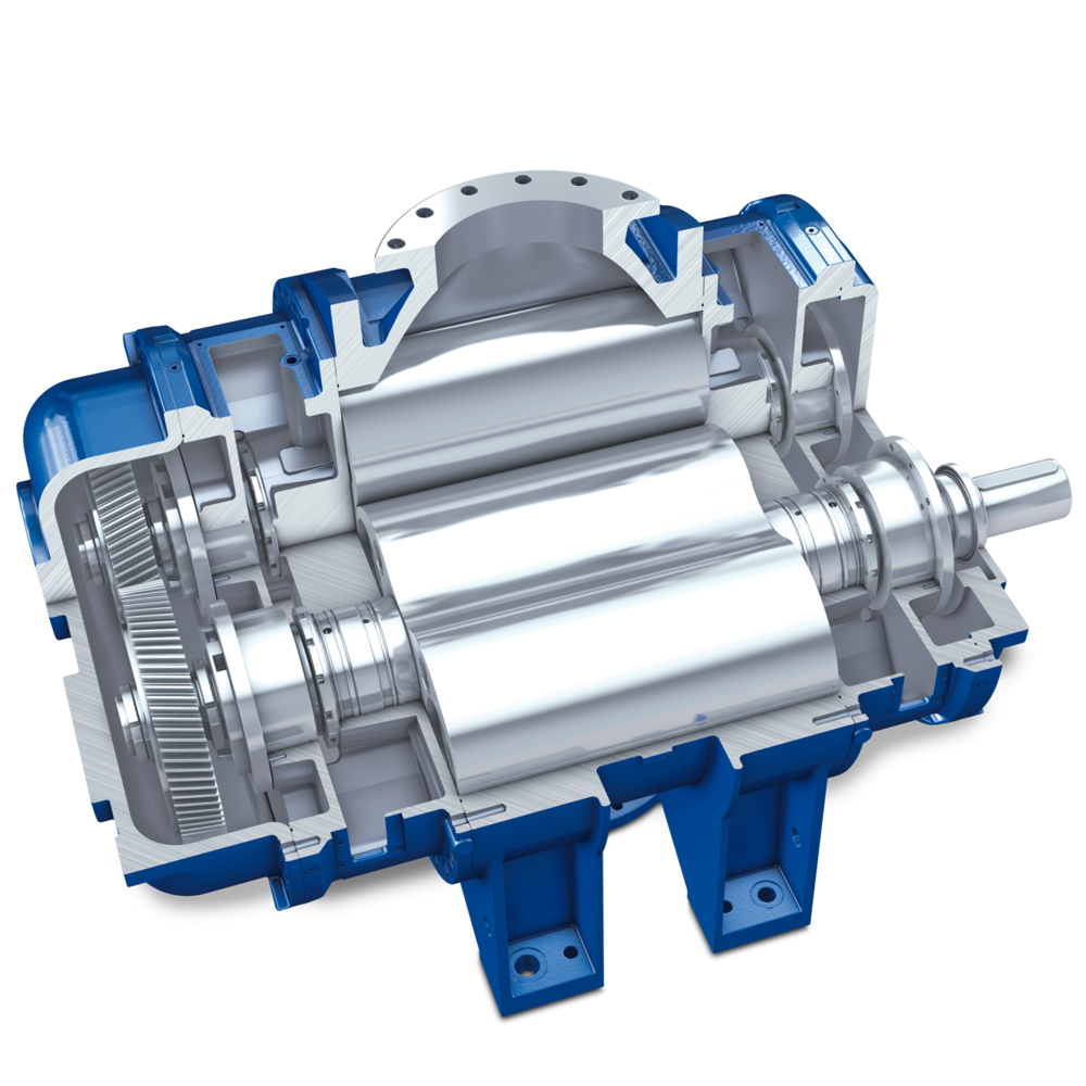 - Automatic belt tensioner and integrated discharge silencer base frame application for the blower package.